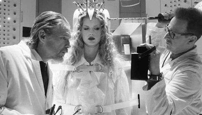 The video then sees the entrance of Dead Poet Society actors Ethan Hawke and Josh Charles who appear as scientists to check Taylor’s vitals before giving her a major shock.